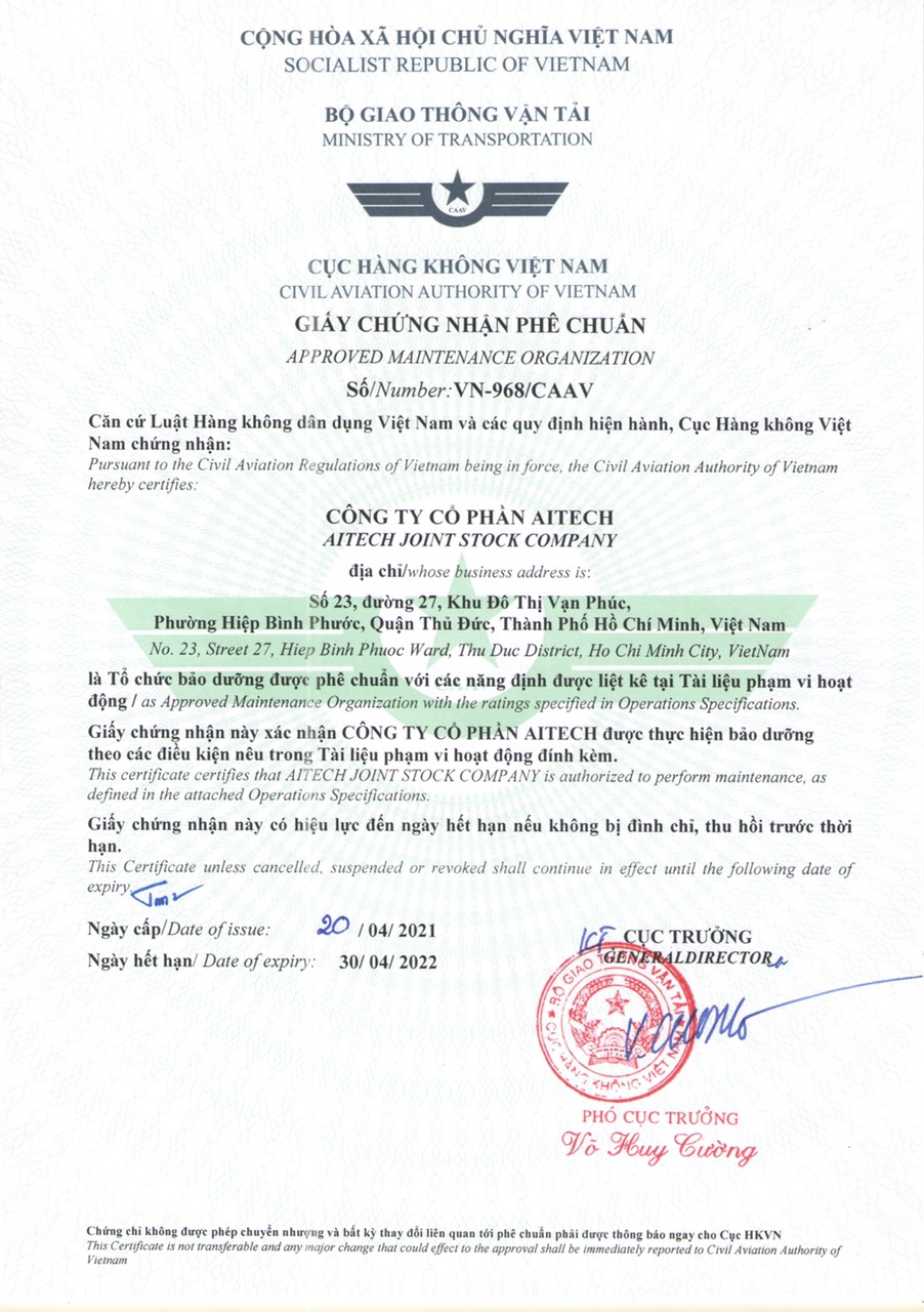 AITECH  là đơn vị hàng đầu dịch vụ và đào tạo trong kiểm tra không phá hủy tại Việt nam và một phần trên Thế Giới. Đơn vị được phê chuẩn tổ chức bảo dưỡng máy bay của Cục Hàng Không Việt Nam (CAAV). Chúng tôi đang nổ lực để hoàn thiện và phát triển bản thân nhằm trở thành một đơn vị hàng đầu trong việc cung cấp các dịch vụ và đào tạo cho ngành kiểm tra không phá huỷ trên Thế Giới.